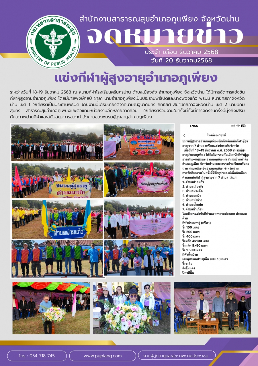 แข่งกีฬาผู้สูงอายุอำเภอภูเพียง 18-19 ธันวาคม 2568