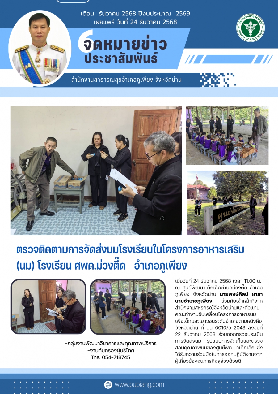 ตรวจนมศูนย์พัฒนาเด็กเล็กตำบลม่วงตึ๊ด